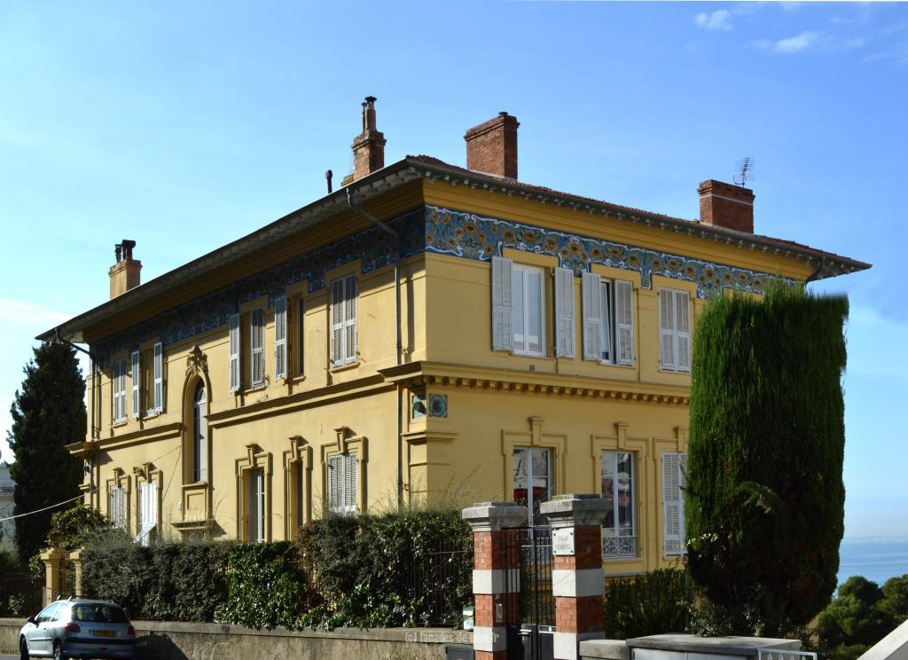 On trouve des dizaines de villas que l’on peut appeler niçoises caractérisées par des toits à 4 pentes sous lesquels les artisans niçois ou italiens ont peint ces fresques à l’abri de la pluie et du soleil