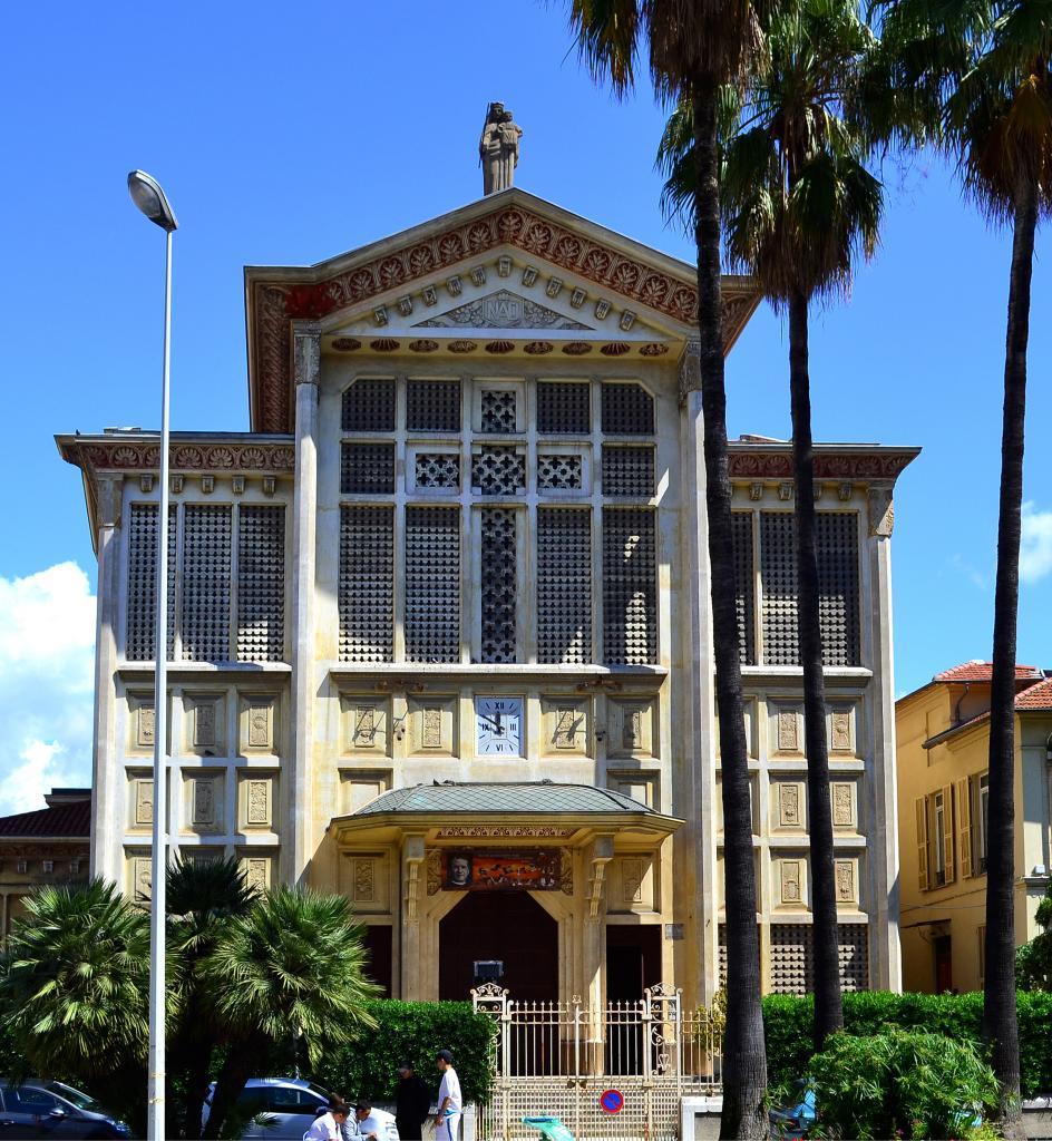 Inspirée de l'église Notre dame de Raincy avec ses claustras lumineuxmais les fresques sous la toiture rappel les maisons niçoises.