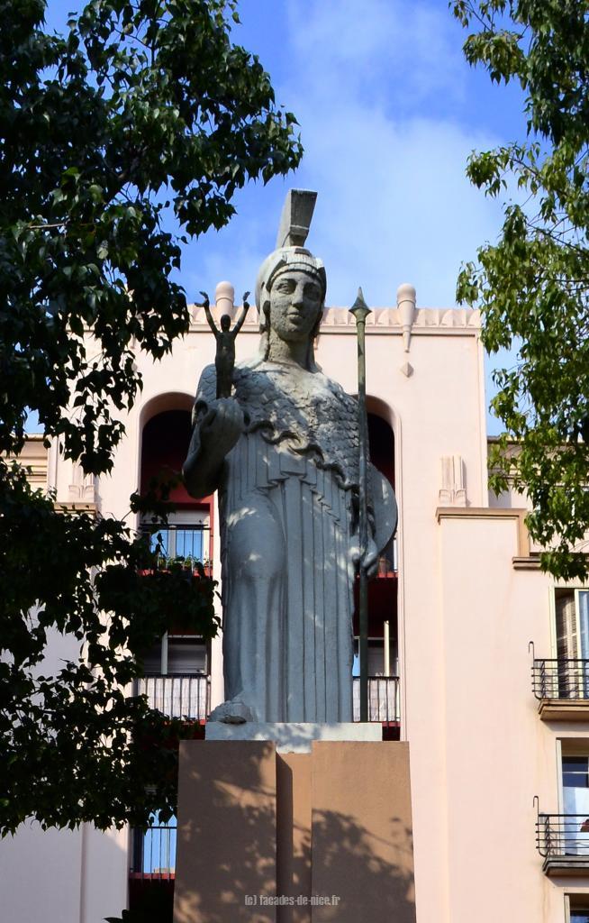 On peut voir le square privatif avec une statue.