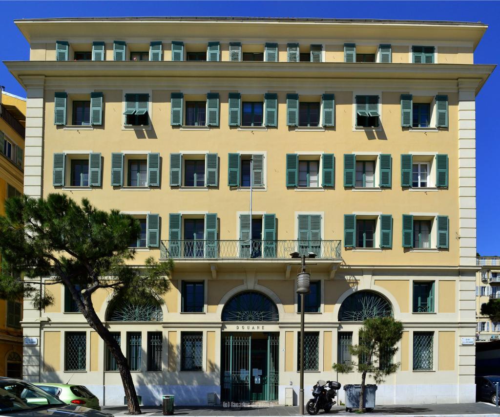 Contrairement aux batiments voisins dont le style est aussi Néo-Classique Turinois du XVIII siècle, ce batiiment a été construit en 1958 mais avec l'obligation de s'harmaniser avec eux.