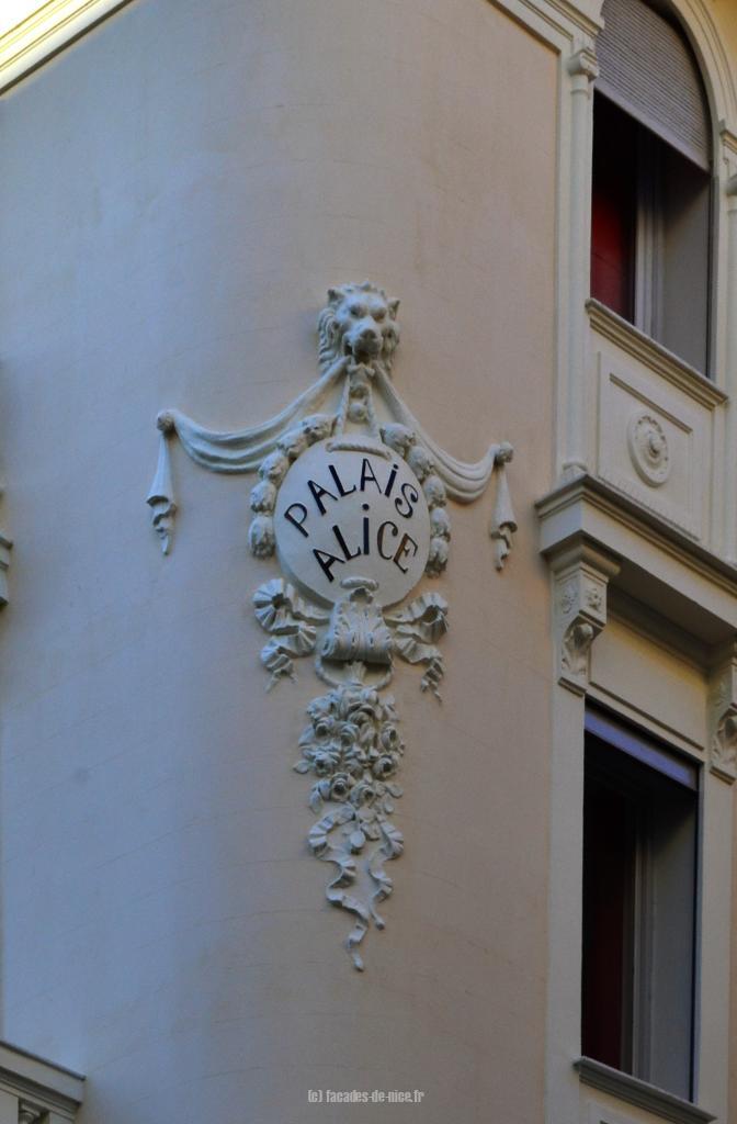 Cet immeuble rappelle les palais italiens. détail le nom "Palais Alice" est inscrit sur l'angle du bâtiment .